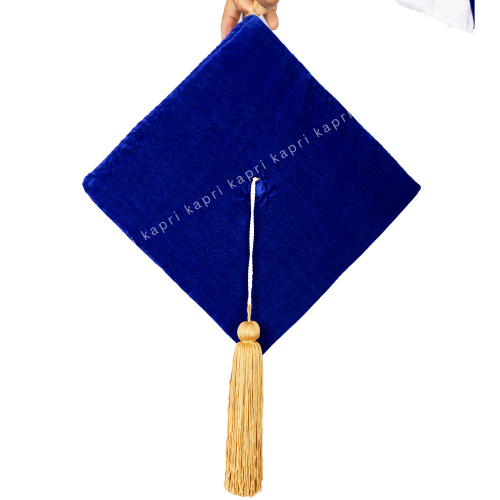 Royal Blue Velvet Graduation Cap with Golden Tassel