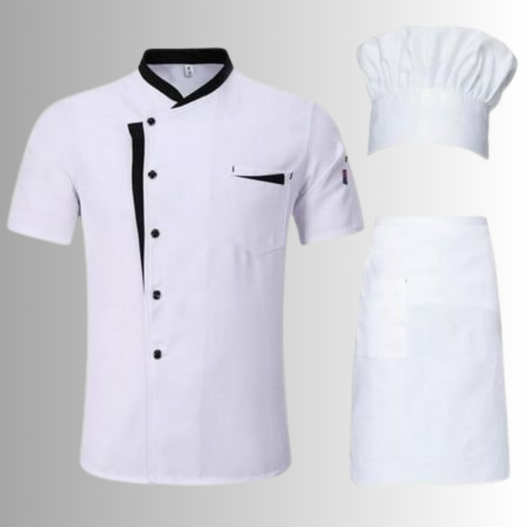 The matching chef hat and apron complete the professional look while helping maintain hygiene and cleanliness in the kitchen. Whether you’re working in a restaurant, hotel, bakery, catering service, or culinary institute, this chef uniform set is designed to meet professional kitchen standards.