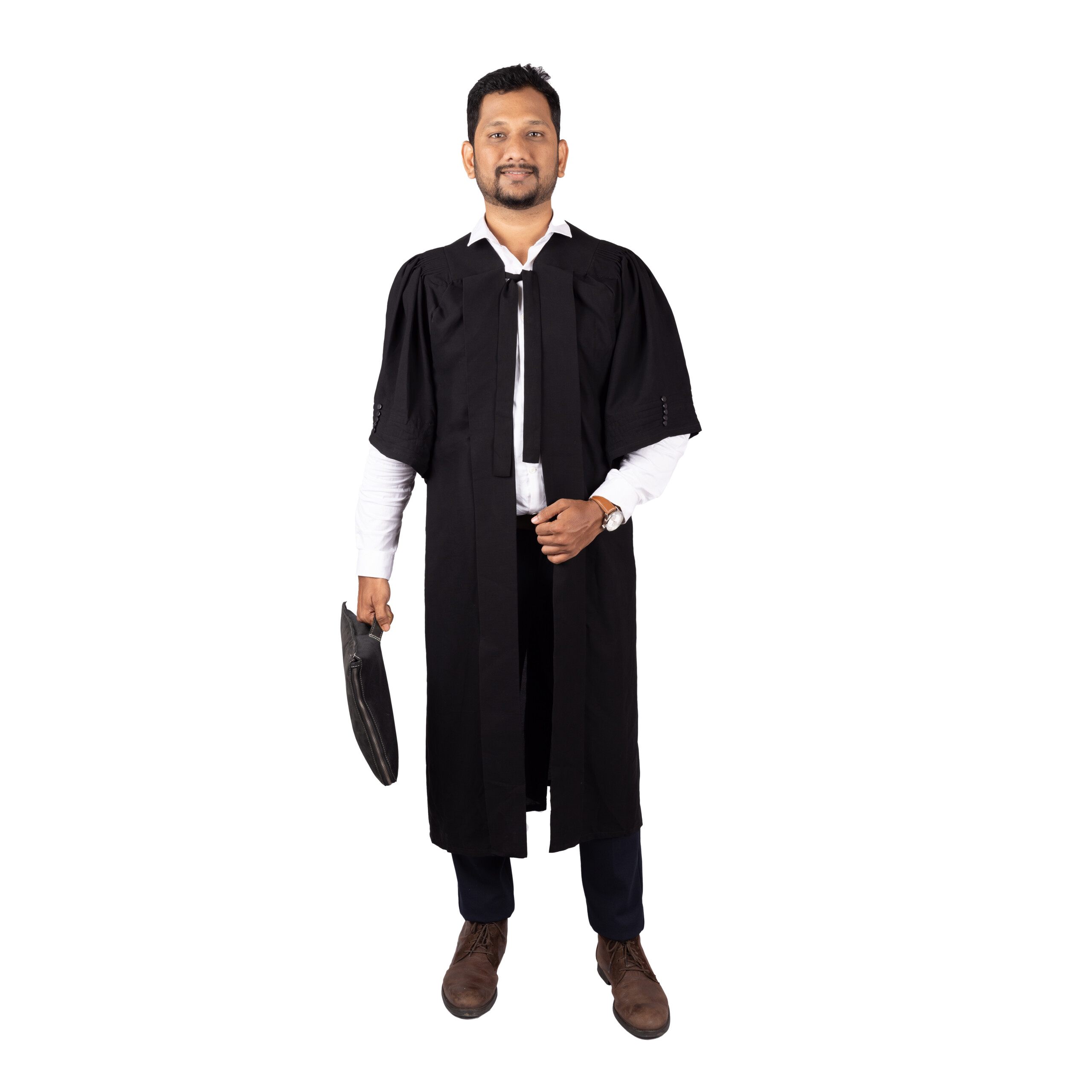 The sleek black finish and classic front pleats add a refined touch, while the lightweight material ensures breathability and ease of movement. Ideal for lawyers, advocates, and legal professionals, this gown upholds the highest standards of professional attire.