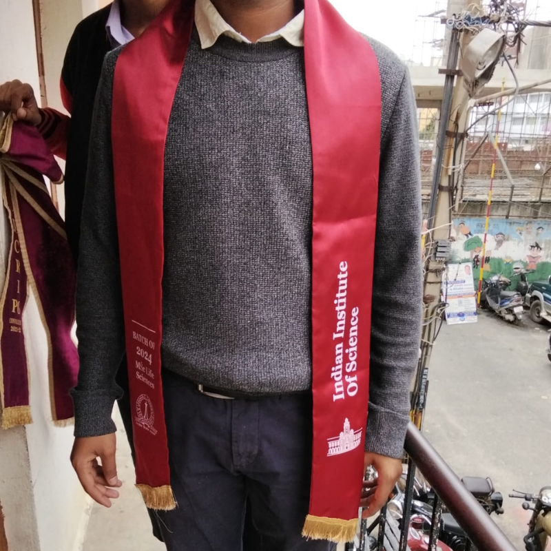 This maroon satin stole exudes academic prestige and is ideal for graduates. Featuring institute branding, it makes a perfect keepsake for those completing their postgraduate studies.