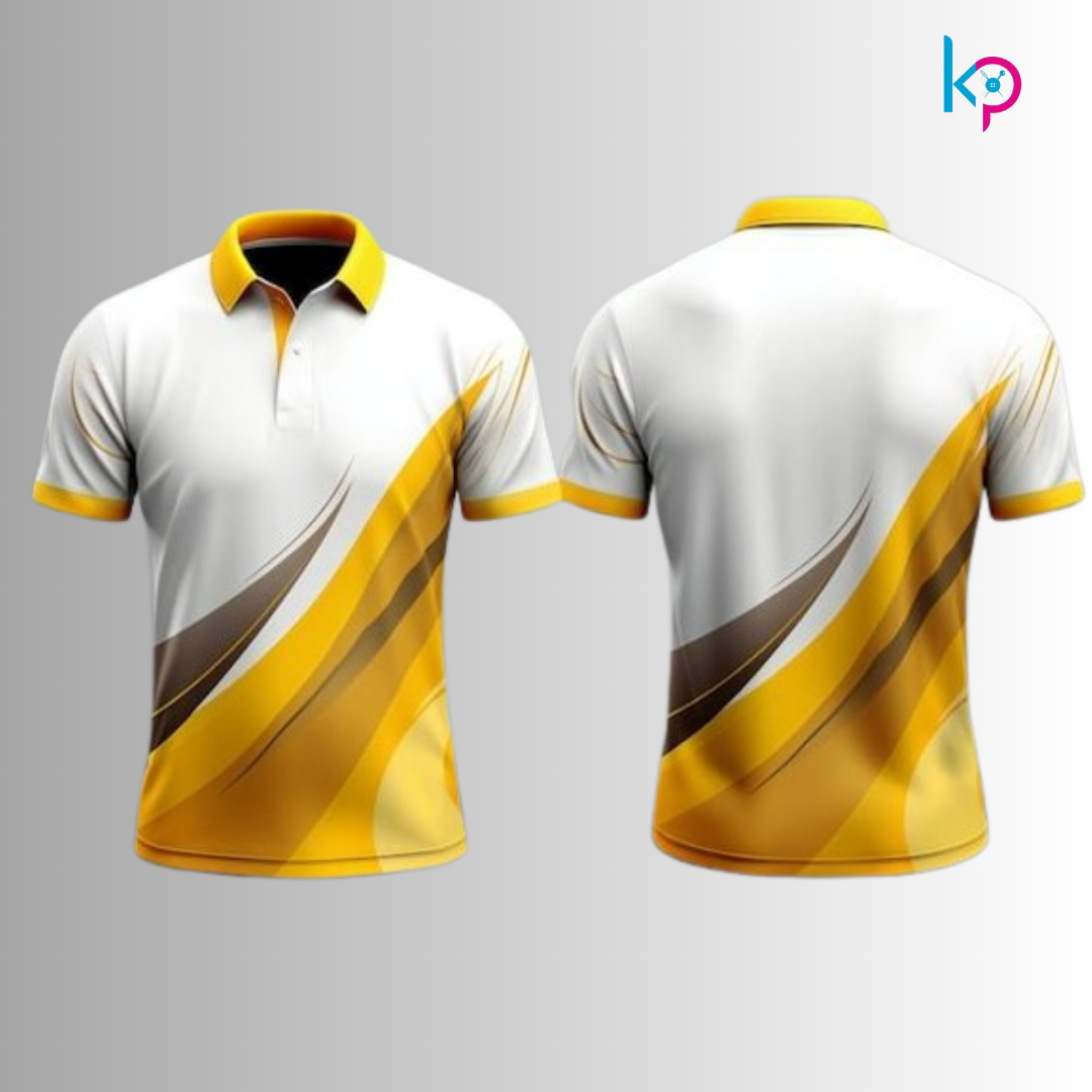Men’s Dynamic Polo T-shirt – White/Yellow/Brown Abstract Design
