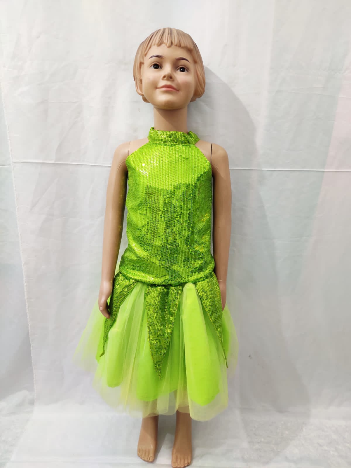 Let your little one dazzle on stage with this Sparkling Green Sequin & Net Dance Party Dress for Girls. Featuring a shimmering green sequin bodice with a stylish high neck design, this dress is paired with a layered net skirt that gives it a playful yet elegant look. The petal-style skirt detailing adds extra charm, making it perfect for performances, annual functions, fancy dress competitions, and festive celebrations. Lightweight, comfortable, and eye-catching, it’s the ideal outfit for young stars who love to shine.