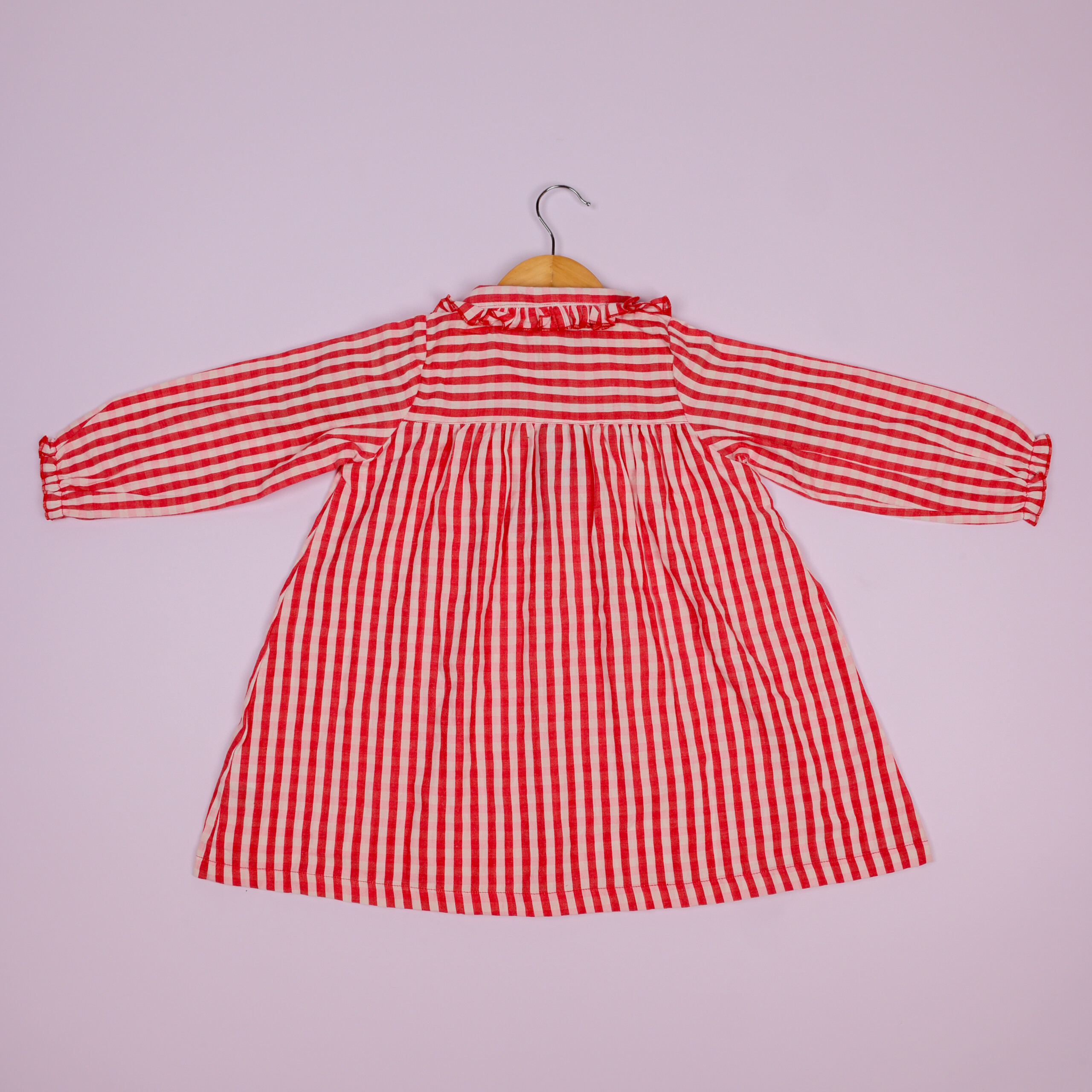 Let your little princess shine in style with this charming red and white striped cotton dress from KAPRI Company. Designed for both comfort and cuteness, this dress is perfect for casual outings, festive events, or everyday wear. Its eye-catching vertical stripe pattern adds a touch of elegance while giving a bright, cheerful vibe that every little girl will love.